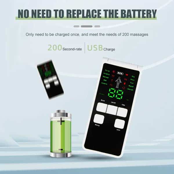 TENS uređaj može se koristiti za čak 200 terapija sa samo jednim punjenjem. TENS uređaj je malen poput mobitela, lagan i prenosiv, pogodan za masažu i opuštanje bilo kada i bilo gdje, što vam daje neograničenu slobodu.